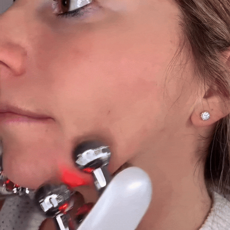 Integrated directly into the roller head, medical-grade LED lights saturate the skin at specific wavelengths while you roll.